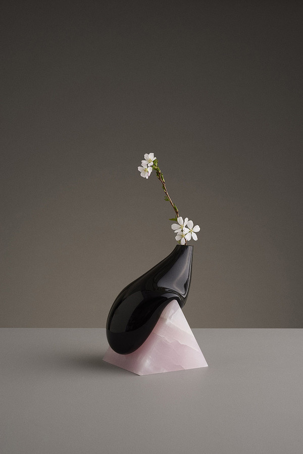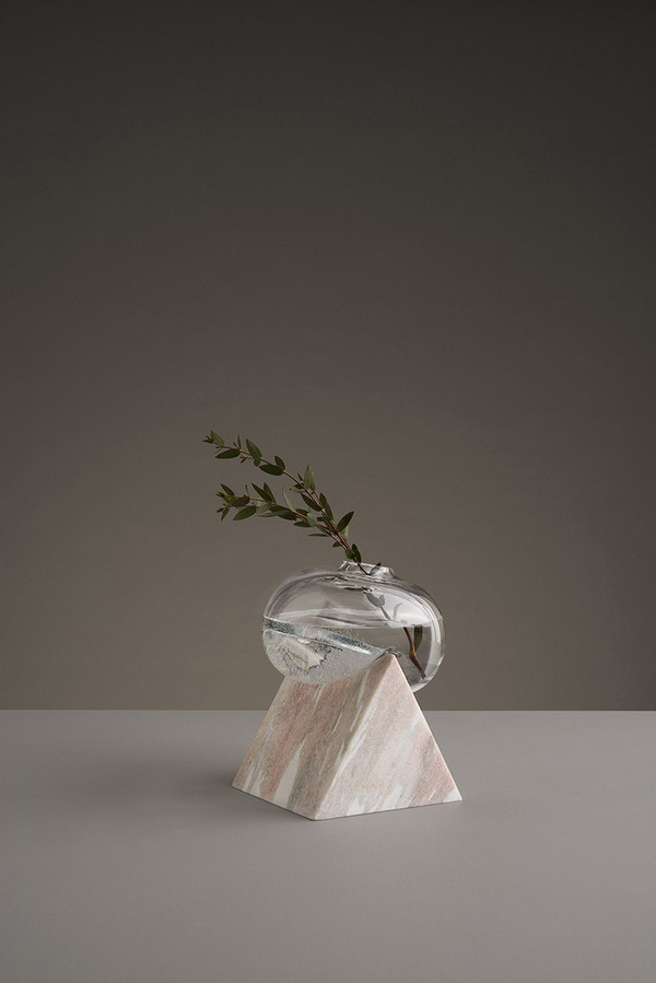 刚与柔、虚与实、脆弱与坚硬在这个花瓶系列上得到了完美的诠释,几何图形的大理石坚实利落,置于其上的玻璃瓶身曼妙多姿,无论花朵有否,都令人赏心悦目。
