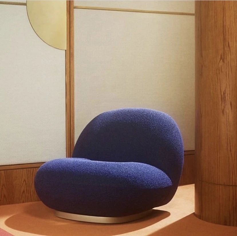 这里的每件家具都是来自GUBI,GUBI创立于1967年,是丹麦国宝级家居品牌。胡桃木餐桌、Beetle Chai、Pacha Chair和藤编椅都是很有代表性的作品。Pacha Chair的样子看着就很舒适。
