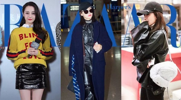 漆皮迷你短裙的光泽格外吸睛,与字母毛衣搭配,衬托出热巴的俏皮可爱。