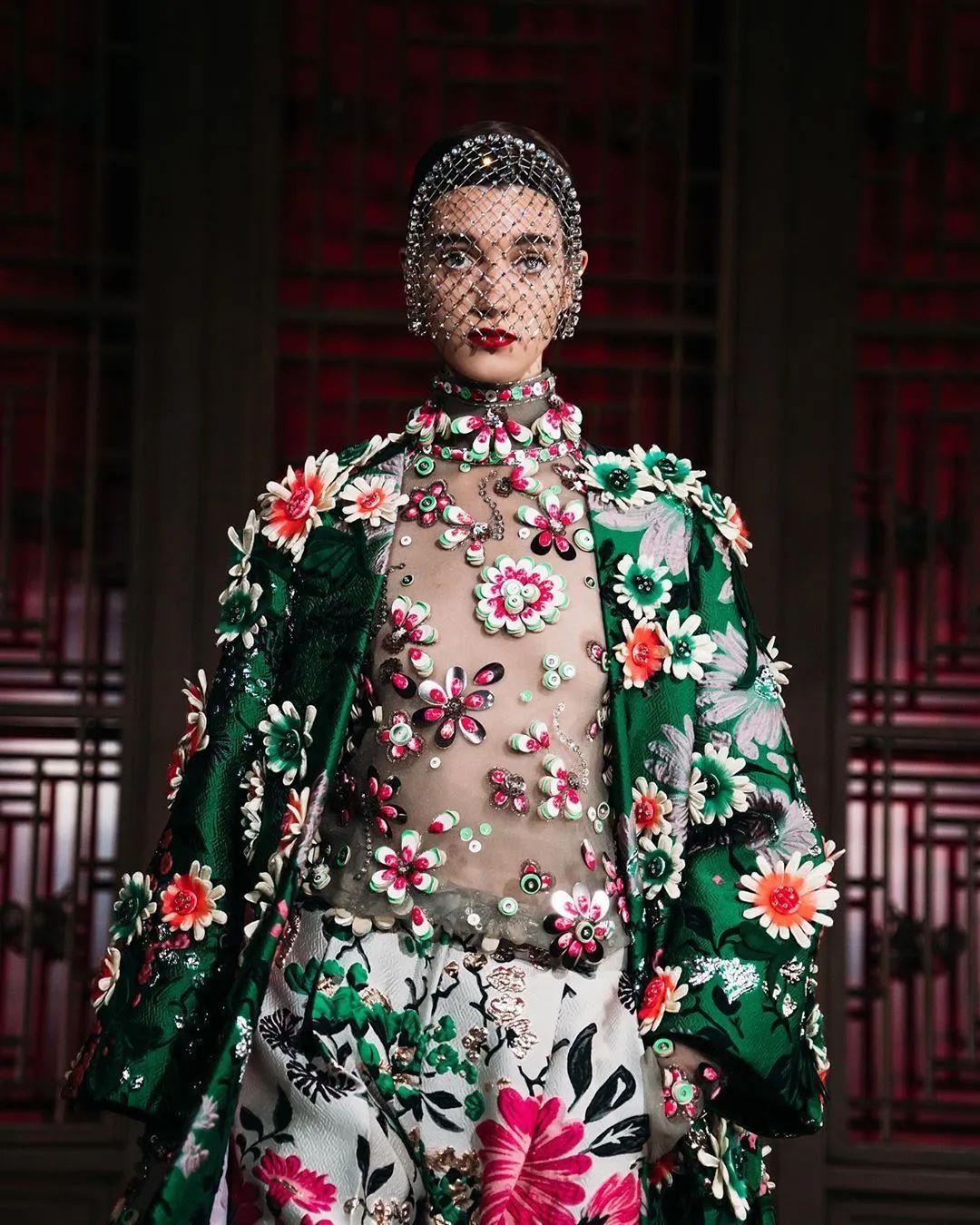 在人文和数字变革糅合的当下,Valentino开展一场两者平等的对话,透过数字效果和人文精神并重的演出,弘扬高定时装所代表的创意、想象和情感。