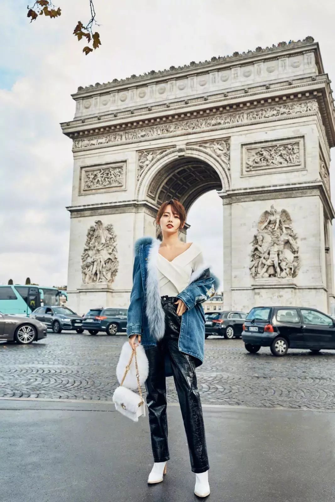 与风衣面料略有不同,一身牛仔派克大衣多了份率性所在,交叉领口露出优质的颈肩线,张嘉倪漫步在巴黎街头,人和景是一样的美~