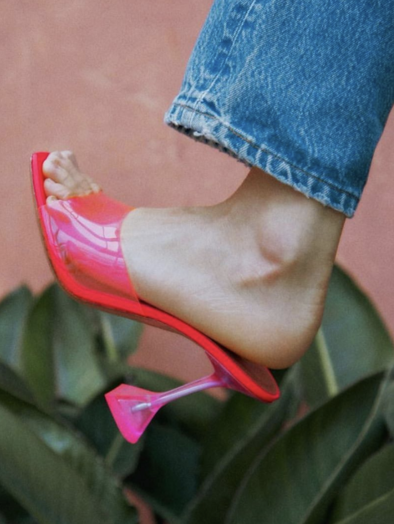 来自西班牙的品牌Miista就出了好几款彩色系透明跟鞋⬇️细带式或是夹趾拖等款式的鞋跟,全部都是由手工雕刻的有机玻璃材质完成。