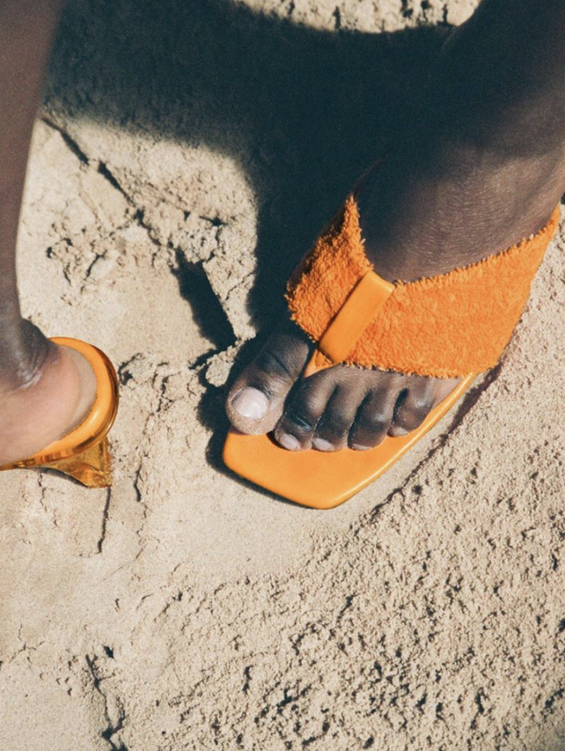 手工雕刻的球形后跟也是Cult Gaia的经典设计,加点色彩,度假风与异域风情就出来了~