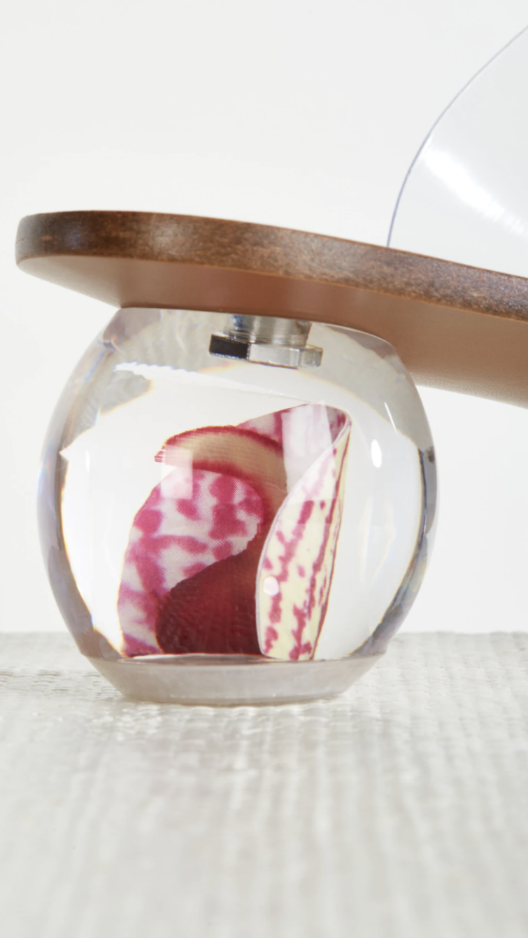 因为鞋跟透明的属性,也就给了设计师们更多的可能性,在Silvia Avanzi手下推出的蛋形跟就很经典,这一脚下去也是真的不怕踩碎!
