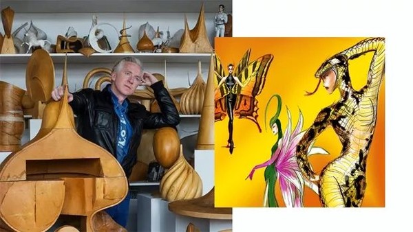 Philip Treacy与他为《VIVID Grand Show》设计的帽饰手稿