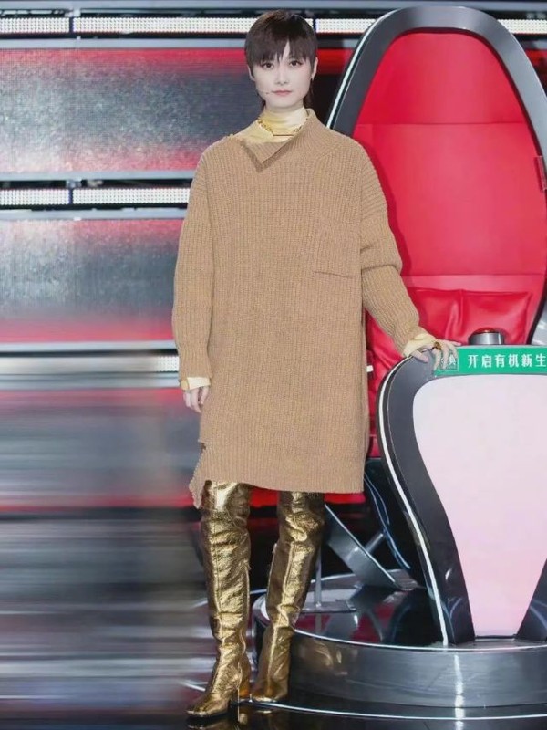 玩笑归玩笑,不过芭姐确确实实被李宇春身上的这套Marni不规则毛衣种草了!高领拼接就像是穿了“假两件”,领口处的残缺设计也是挺酷的,当天李宇春以一套金色长靴作为加持,是任何造型都难不倒的时髦!