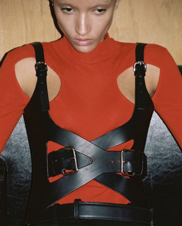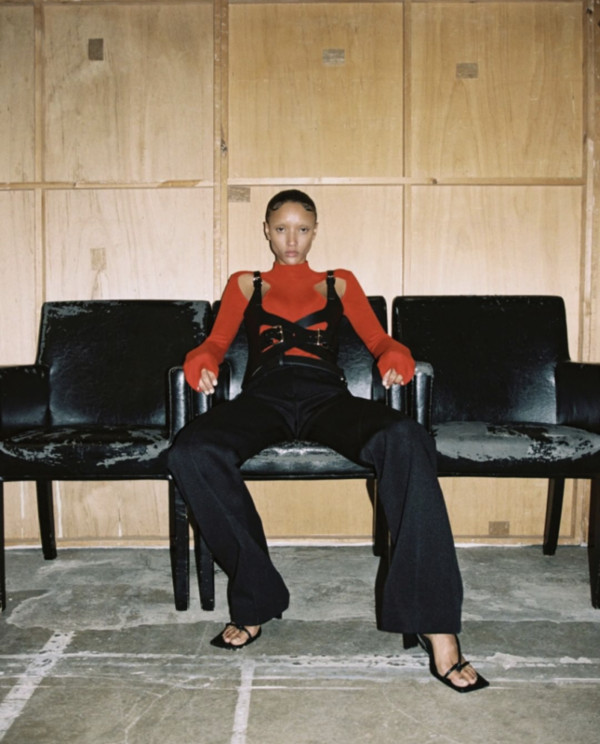 Dion Lee的设计总是充满着解构感,将前卫与实用融合得恰到好处,还有这款在红色肩部挖空的毛衣也值得一看,独特的剪裁,充分体现了Dion Lee一直追寻的解构美学。