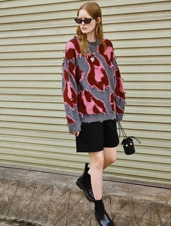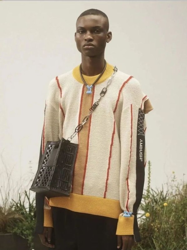 更具潮流感的街头品牌Ambush也不甘示弱,最新发布的2020秋冬系列拼接毛衣,肩部采用折叠式廓形,灵感来自于工地上使用的集装箱袋,新发售炙手可热,追求街头潮流的型男酷女们再不抢就没了!