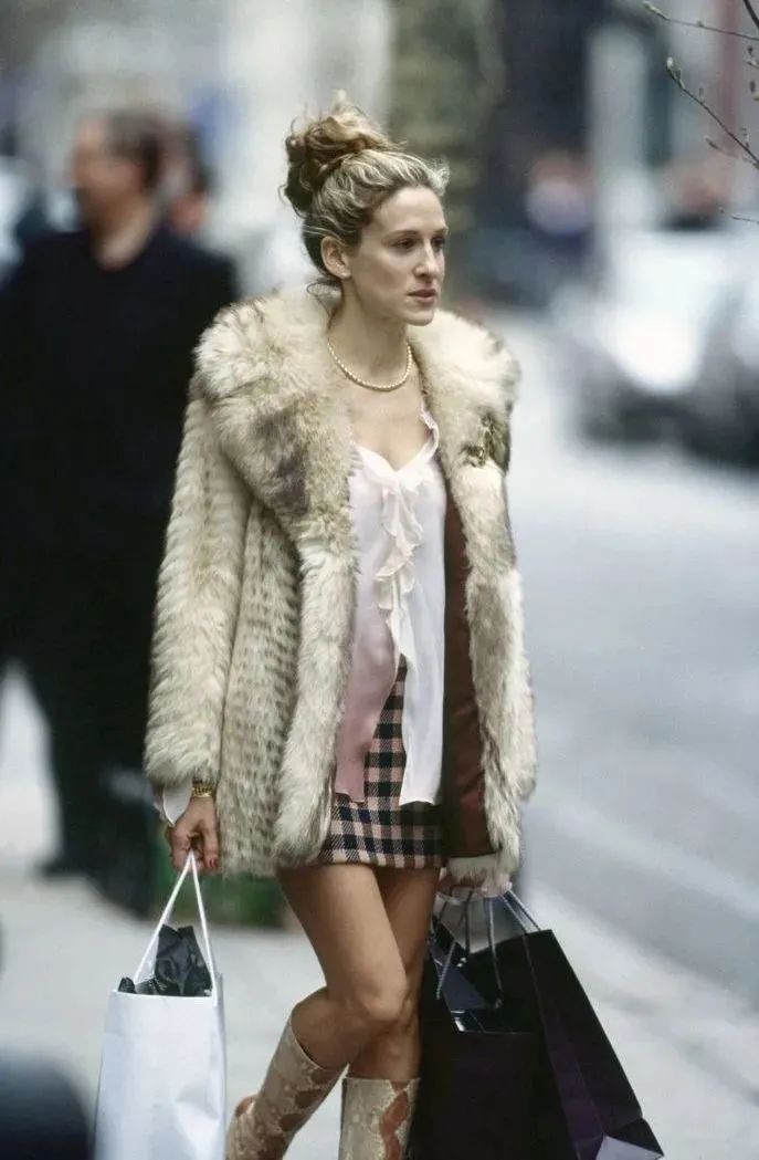 而不管时尚怎样变化,生活在曼哈顿的Carrie Bradshaw始终是不变的时尚icon,在时尚圣经《欲望都市》中很少看到Chrrie有重复的衣服出现,而唯独皮草大衣是个例外,圣诞节穿的这套皮草混搭睡衣,也算是全剧最经典的look之一了。姐妹四个棒球比赛的皮草穿搭更把美貌冲击力拉满。