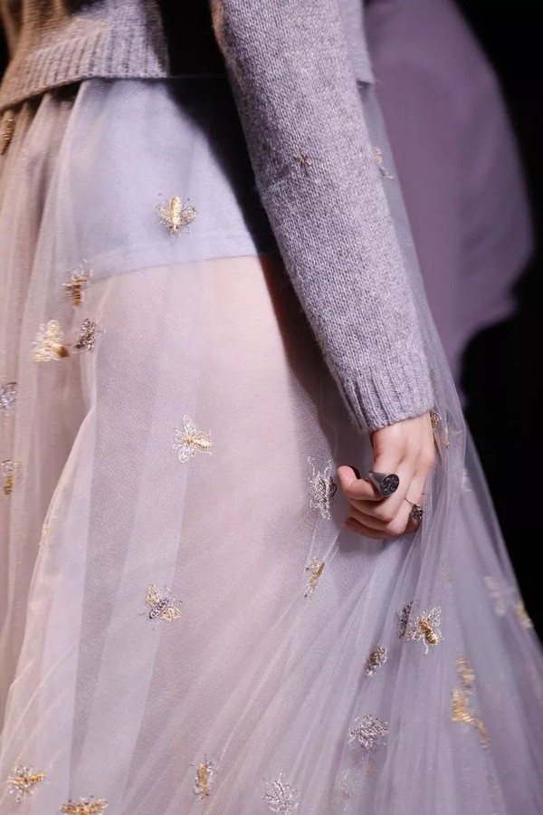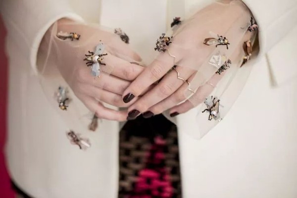 Maria Grazia Chiuri的蜜蜂不只是金色的,她喜欢用丰富的丝线和珠钉去塑造每一个立体蜜蜂造型,让细节更加玩味。