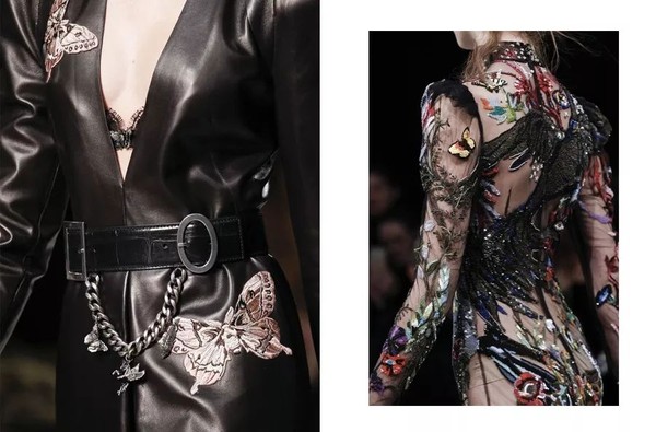 Alexander Mcqueen曾在2006年春夏系列为我们带来诡异浓烈的蝴蝶系列,2016年的伦敦大秀上,Sarah Burton致敬Alexander McQueen,再一次把蝴蝶引入了男女装系列。