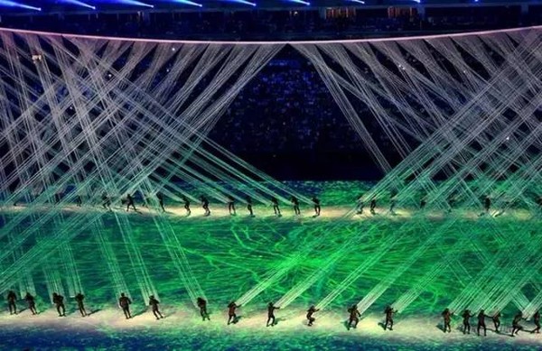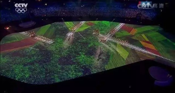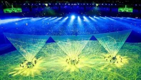 用光幕变幻出了不用的形状,表达了巴西的起源,展现了巴西原住民的生活状态