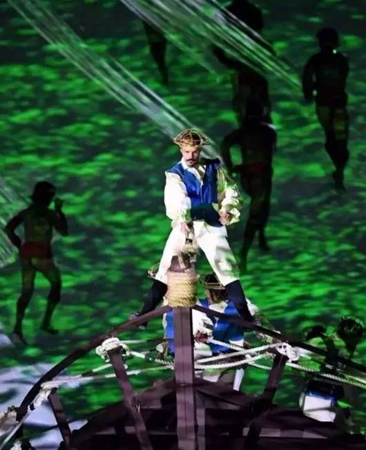 一开场,巴西人Gambiarra“急中生智”地用纸为鼓,这个乐器叫做Berimbau贝林钵 用光幕变幻出了不用的形状,表达了巴西的起源,展现了巴西原住民的生活状态 黑人奴...
