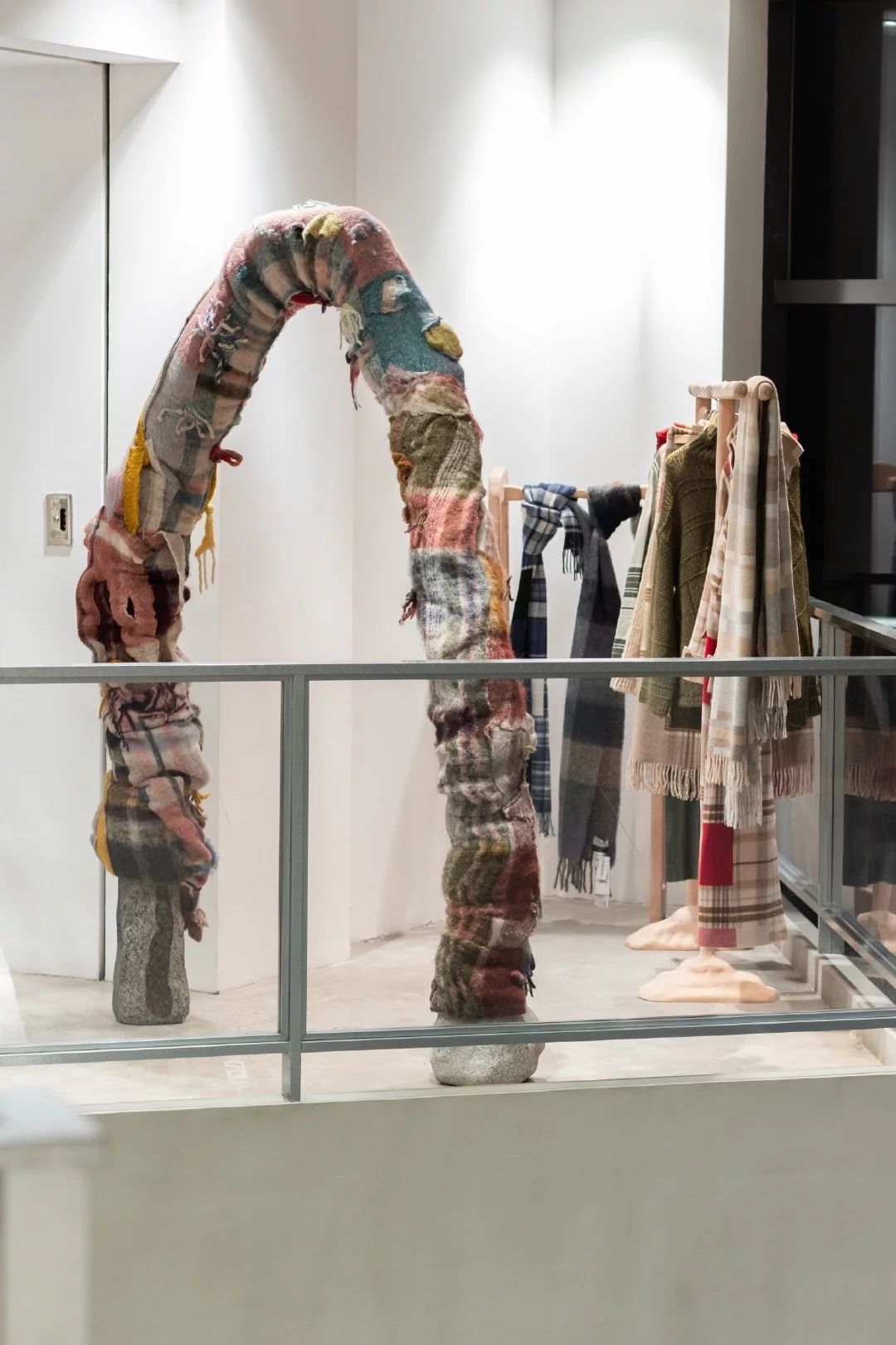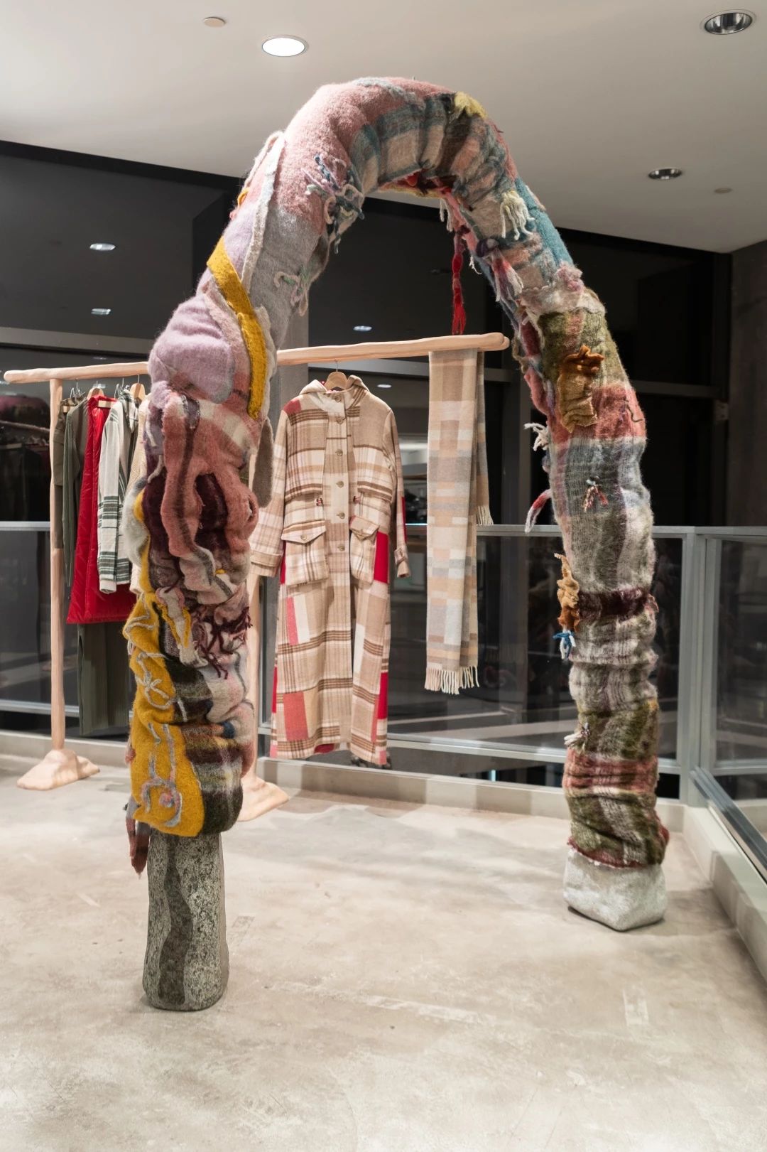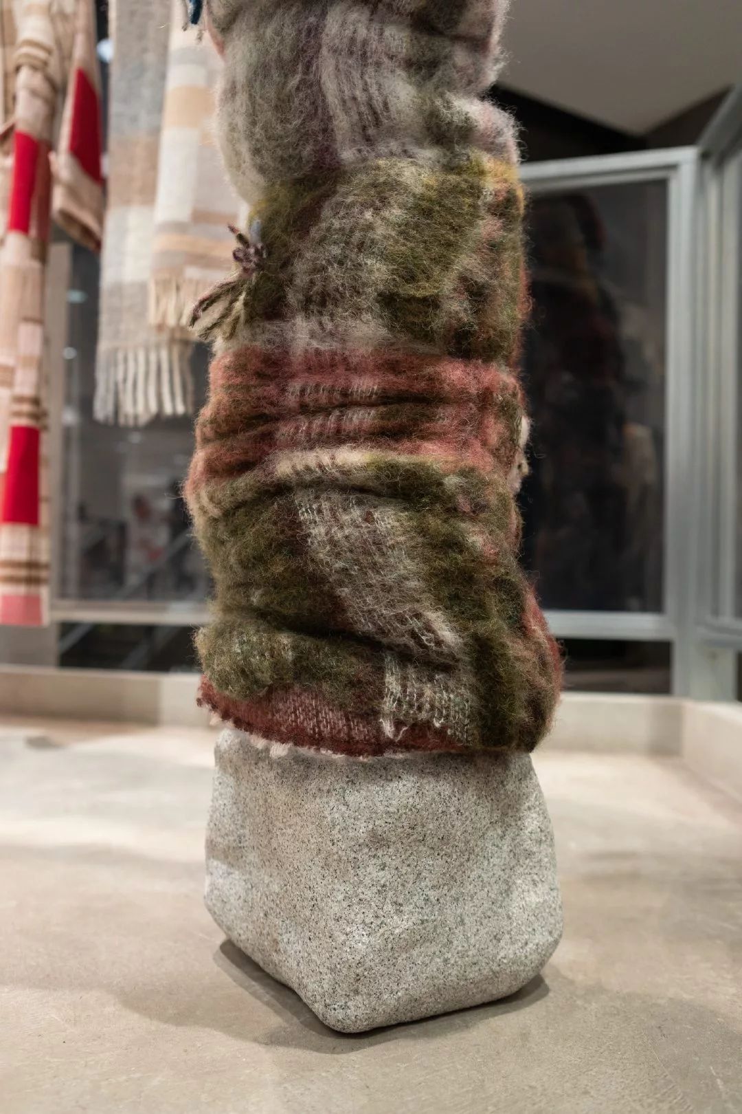 那这件作品的来源是哪里呢?这件作品是Gallefoss七年前用Holzweiler的围巾剩余辅料而设计完成的,通过Gallefoss的艺术视角,以一种全新的方式展示了Holzweiler的废旧回收围巾,诠释了品牌对回收和再利用的奉献精神。