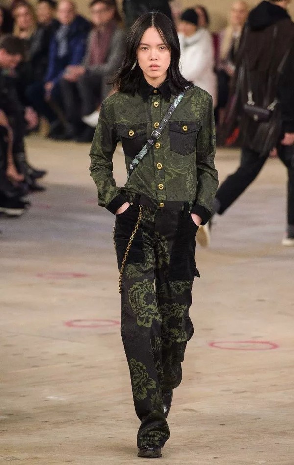 紧身衬衣与长裤的组合挺括感十足,大面积的牡丹印花制造出别样的东方浪漫。绿色也是本季主打颜色之一,试问谁不想在萧瑟的秋冬穿一抹活力十足的橄榄绿呢?