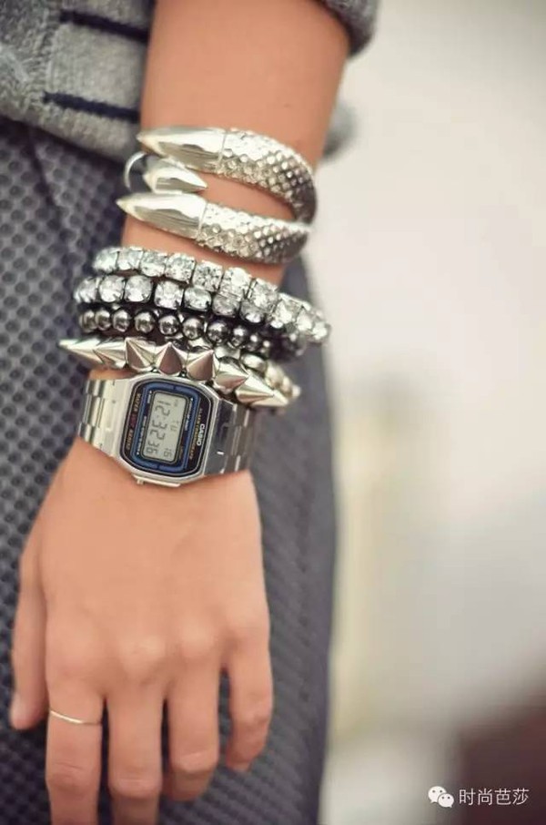 你盒子里的首饰都能成为这只电子表的好朋友,不管细链或铆钉、还是金属和水钻,都能完美融合在一起,百搭程度让你想不到!不信?来看咯~