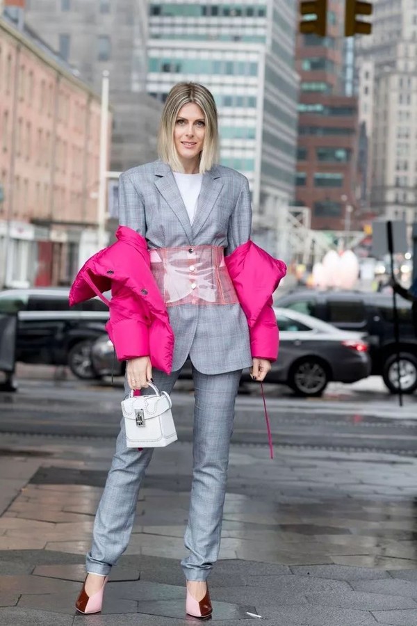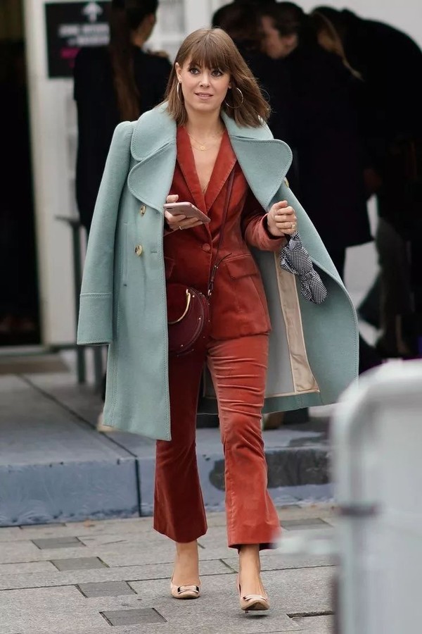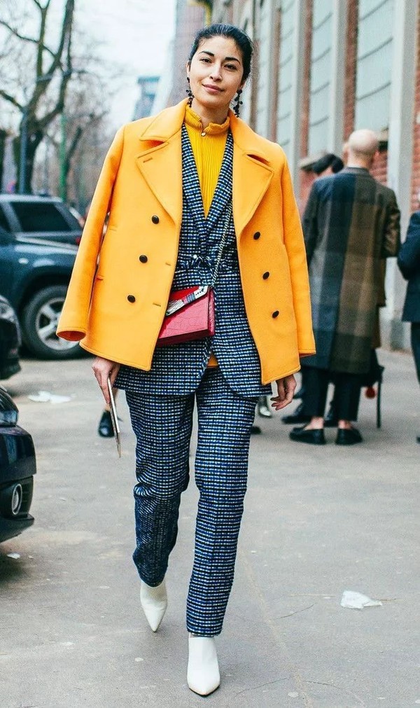 颜色轻快鲜艳的修身西装套装是极佳的选择!配以简单的内搭和经典款的外套,保暖和时髦两不误,室内室外都能保持优雅有型。