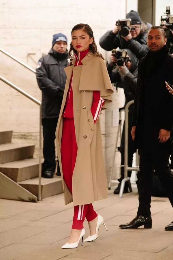 运动套装也是一个不错的选择,披上外套、踩上一双尖头高跟鞋,优雅又精神气十足!冬天的烦恼全部都被抛诸脑后。