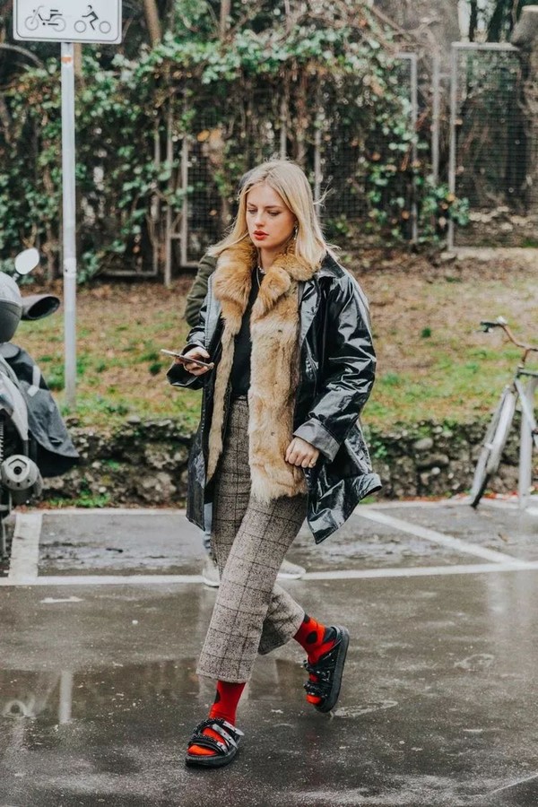 外套材质、色彩之间的相互碰撞也是趣味十足。里外穿搭带来的层次感更是妙不可言!