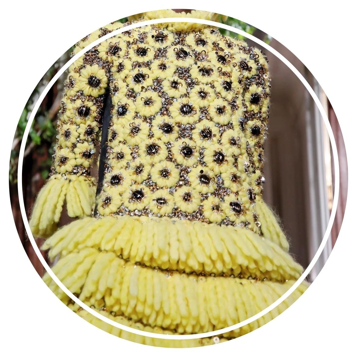 毛线流苏也成为根植于这场秀的核心元素,无论是层叠的堆积还是边缘的缝嵌,渐变色的过渡还是不同颜色的碰撞混搭,都极具质感又热烈华丽。