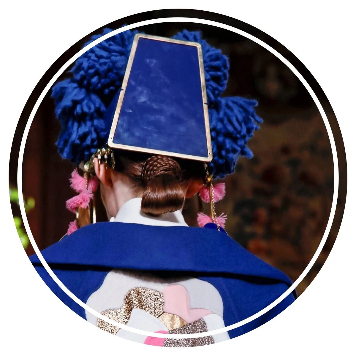颜色各异的头饰,东西方风情的融合渗透于每一处细节,风华绝代的发髻配上和风金属镶边板,多元文化在此刻汇集为风格鲜明的独立群像。