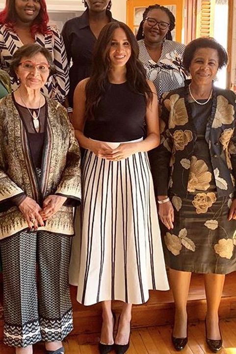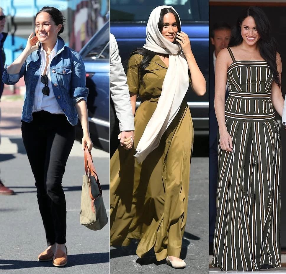 比如最近哈里王子与梅根王妃牵手同游南非清真寺时,就穿了很火的小众品牌Saund的橄榄绿连衣裙,售价约为2300元。