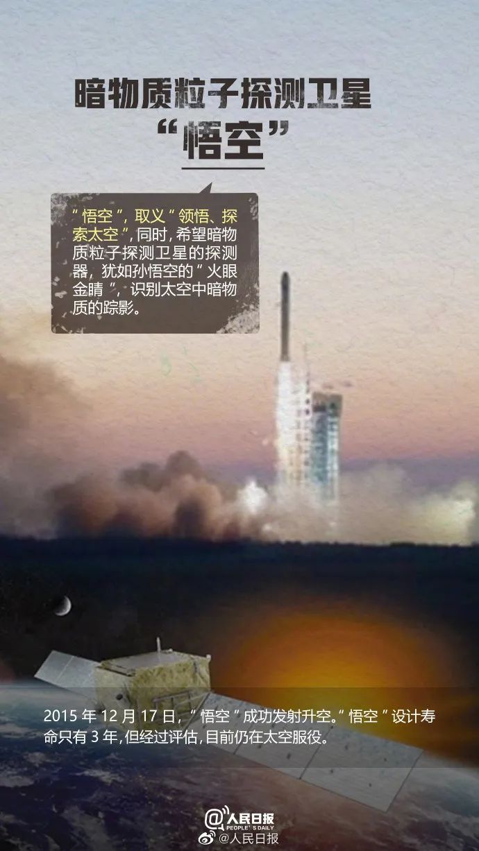 暗物质粒子探测卫星的名字也很有趣,作为我国自主研制的世界上观测能段范围最宽、能量分辨率最优的暗物质粒子探测卫星,被命名为「悟空号」。