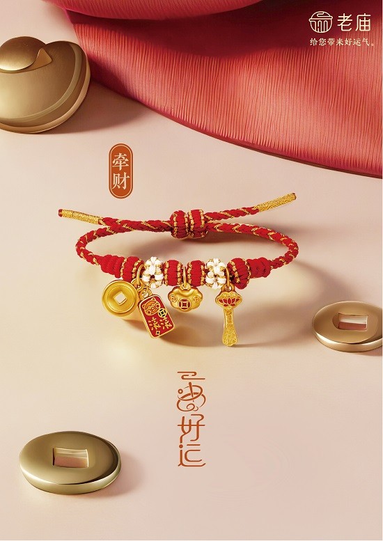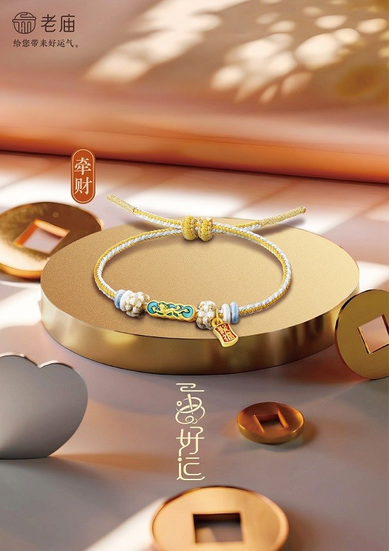 为契合年轻人多维度的“好运”诉求,老庙一串好运系列将陆续推出具有不同“好运”祈福寓意的三大产品线,让消费者获得老庙专属的好运祝福——率先与消费者见面的“牵财”,积极响应当代年轻人对于“富裕殷实”的渴望,为追梦人们“富”能每一份努力;将于七夕佳节上市的“牵线”,则为佩戴者加持“好人缘”,愿所遇皆良人,所行皆坦途;“牵运”以生肖为核心元素,将在岁末年初推出,祈愿来年好运连连。