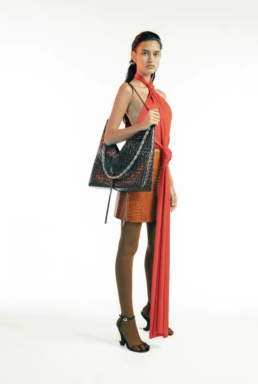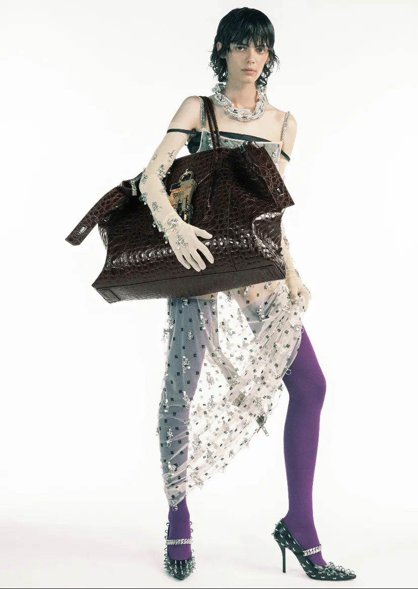 前卫硬朗的风格贯穿整场的TOTE BAG,浓郁的金属质感为我们展现了摩登又锋利的新姿态,虽然是春夏款,但在秋冬背出去更高级时髦,或性感或优雅都能涵盖其中,偶尔朋克一下,赚足回头率。