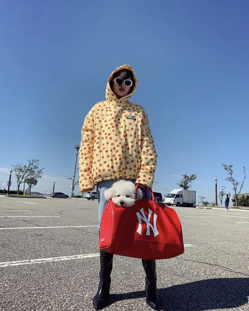 可可爱爱又搞怪的泫雅欧尼最近拿了个极其抓眼的大红色TOTE BAG,简约休闲的Logo款搭配什么都不过分,夸张的大容量装下狗狗毫无压力。