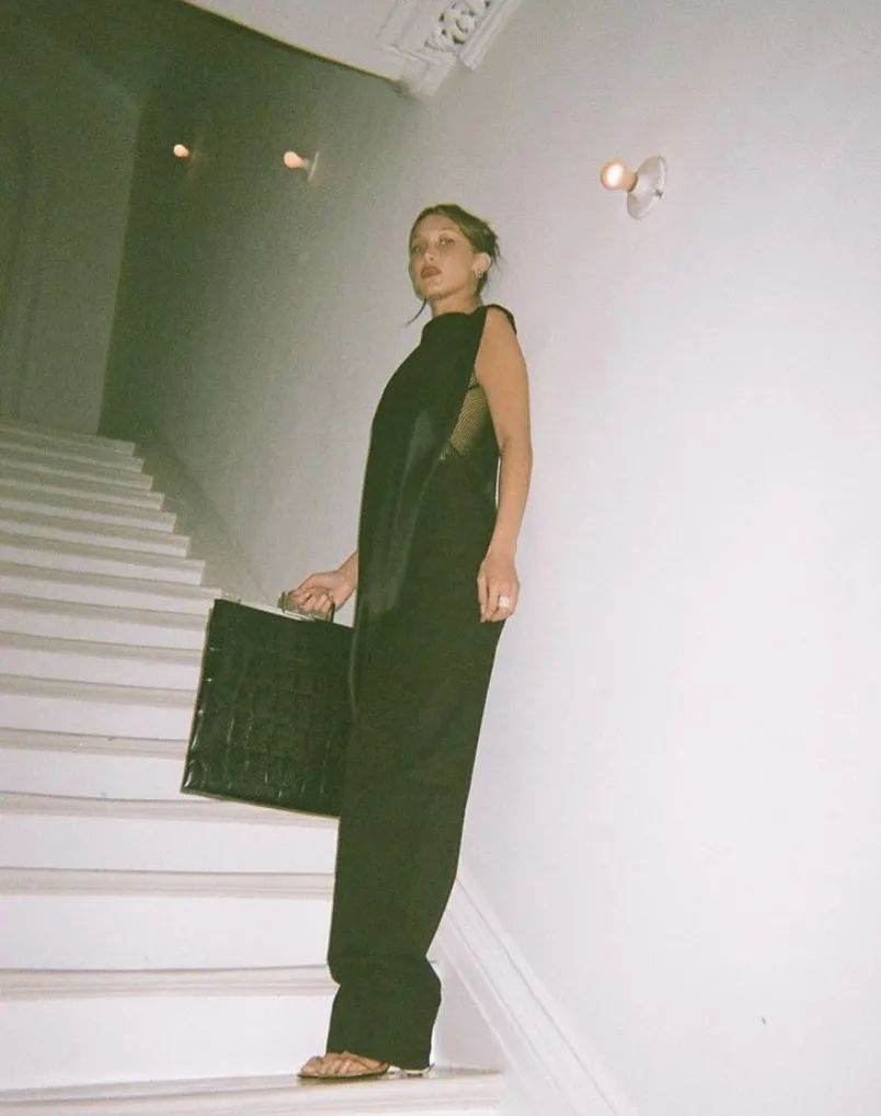 Balla Hadid也是钟爱这款,上身的黑色相当冷艳了,尽显成熟魅力。