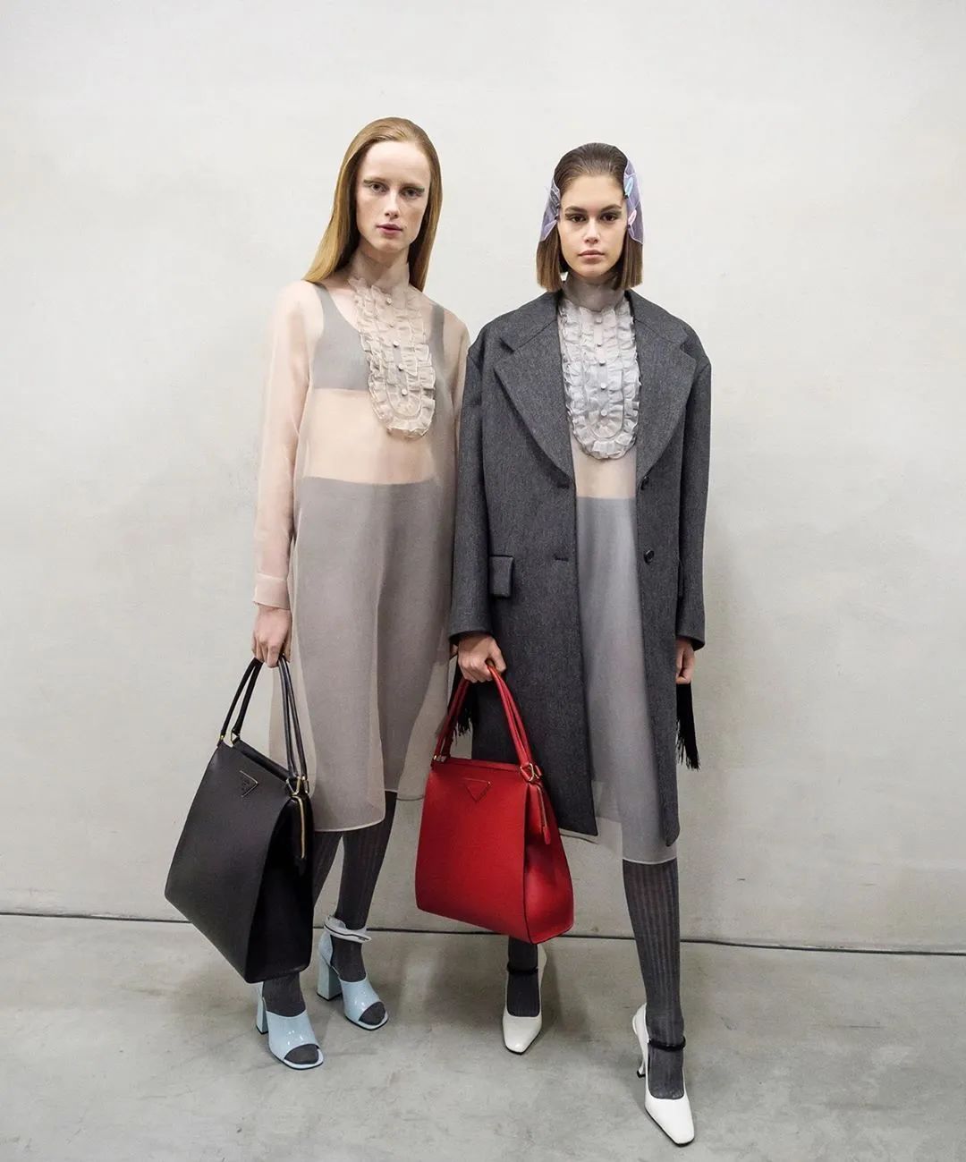 欣赏创意满分的成衣同时,芭姐在秀场上也捕捉到了Prada秀场新鲜热乎的TOTE BAG。
