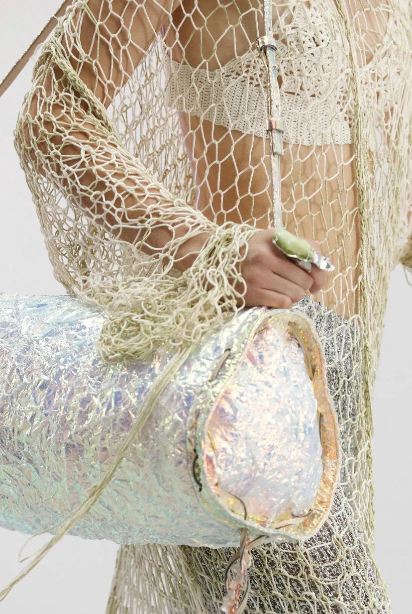 在最新发布的2021春夏系列中,Acne Studios TOTE BAG以颠覆夸张的形象在秀场上亮相,闪亮的光泽、金属感的材质柔软和谐,特立独行是它的关键词。