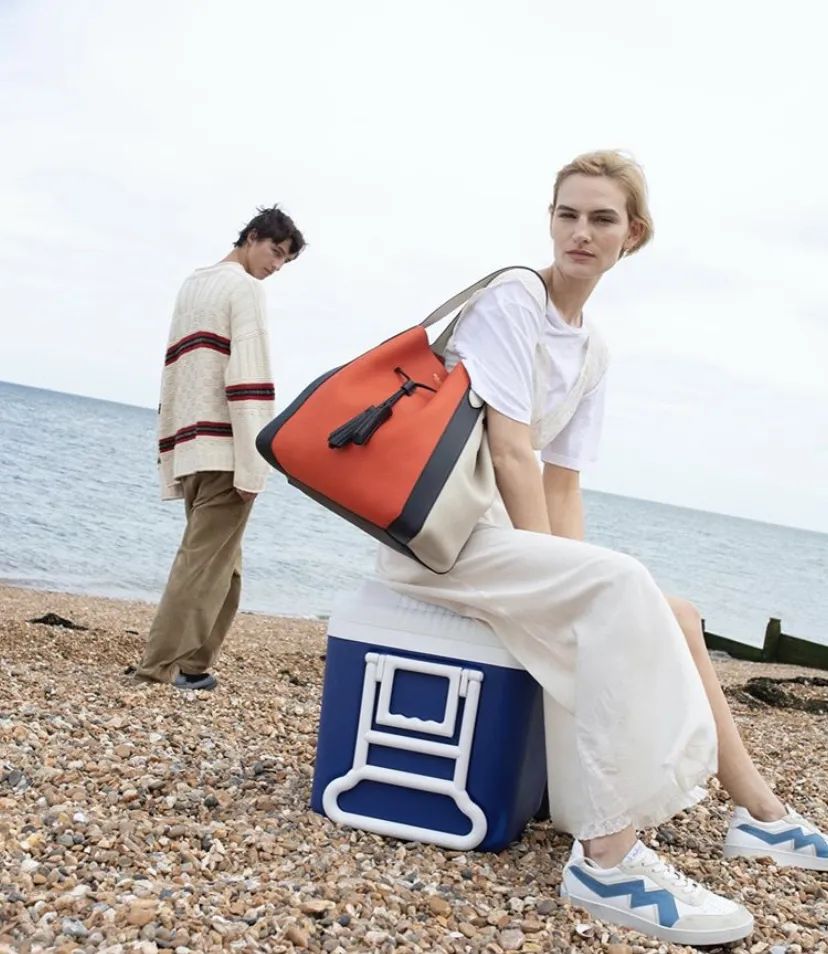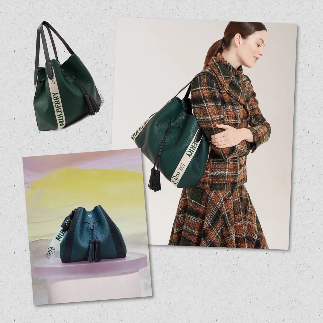 如果你想走英伦风路线,可以搞一个Mulberry Millie系列的TOTE BAG过把瘾,鲜亮的拼接色设计给简单的包包增添了生机与活力,双流苏抽绳的线条让包包看上去很有律动感,背上后精致优雅的成熟魅力女人就是你了。