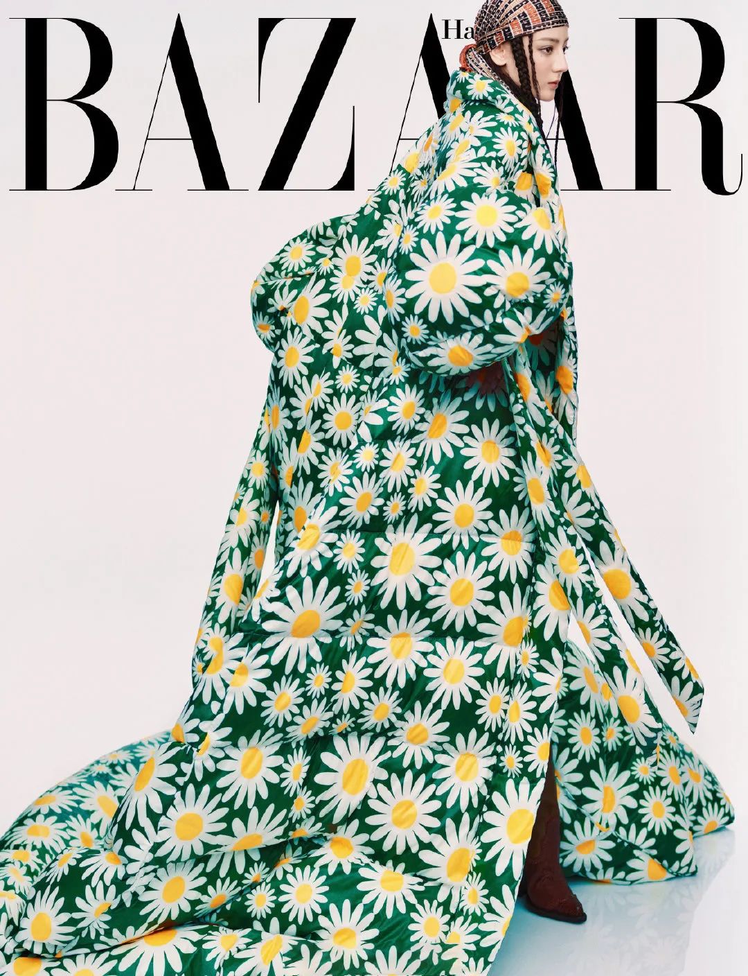 本月热巴就穿着一身绚丽色彩印花的Moncler超大廓形羽绒战袍,登上了芭莎的十一月电子刊封面,不得不夸一句,新造型实在是太绝了。