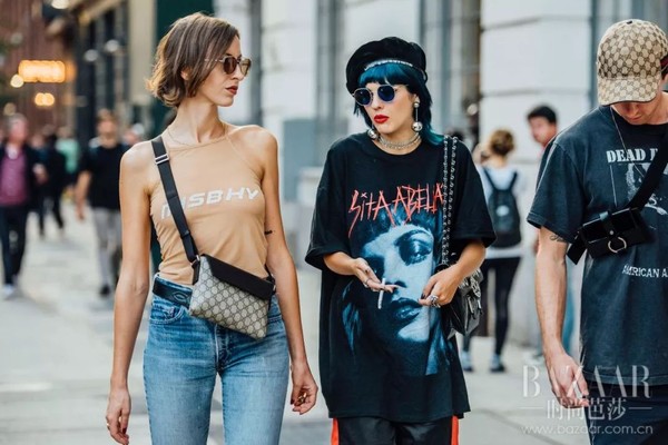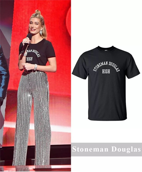 我们都知道黑色具有显瘦功能,所以,当你选择一款较为贴身的黑T恤时,它会自行将你的赘肉遮住。像Hailey Baldwin这样,将黑T搭配上阔腿裤穿更会显腰细腿长。