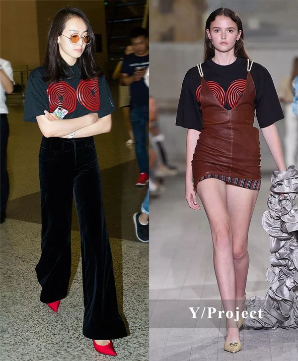 平板身材的女生完全可以效仿周冬雨,用修身黑T更显腰背挺拔。