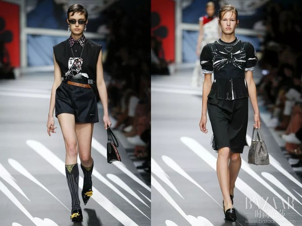Prada 2018春夏系列的黑T穿出生人勿进的冷酷气质。
