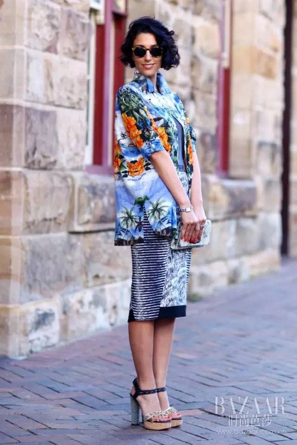 当然如果热爱混搭的你,也可以选择下半身搭配有图案的半身裙,十分抢眼!