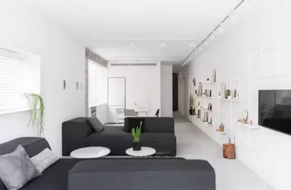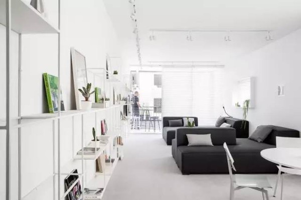 细长的公寓(长19米,宽3.7米)被划分成格子式的平面布局,一个八米长的网格架子沿客厅墙壁延伸,白色铁质材料与窗框呼应,电网作为项目的设计概念,在公寓的家具、照明和造型设计中都有体现