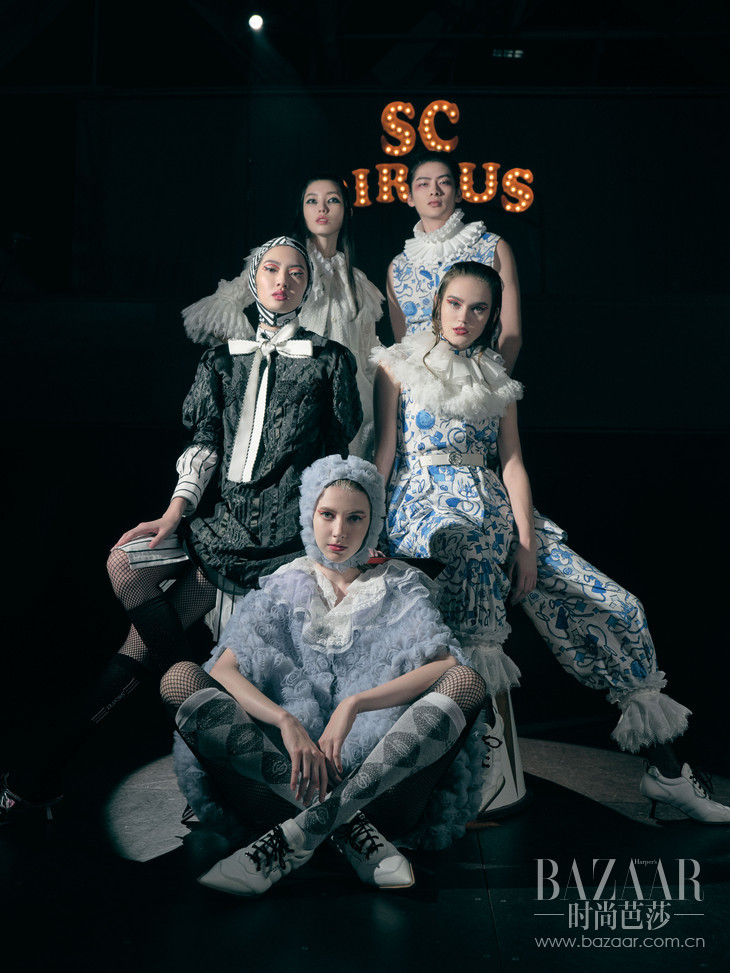 本季以鲜明极具张力的服装轮廓呼应对马戏的想象,蕾丝荷叶堆栈的蓬松袖型、褶饰花边的脖围以及利用裙撑打造蓬松圆润轮廓的半身裙、洋装为系列欢庆高昂开场。