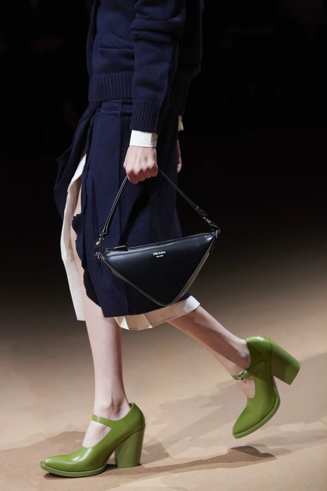 经典包款Re-Edition 1995和皮革手提包也出现在本季秀场,简洁复古的包型彰显不过时的Prada式优雅风尚。