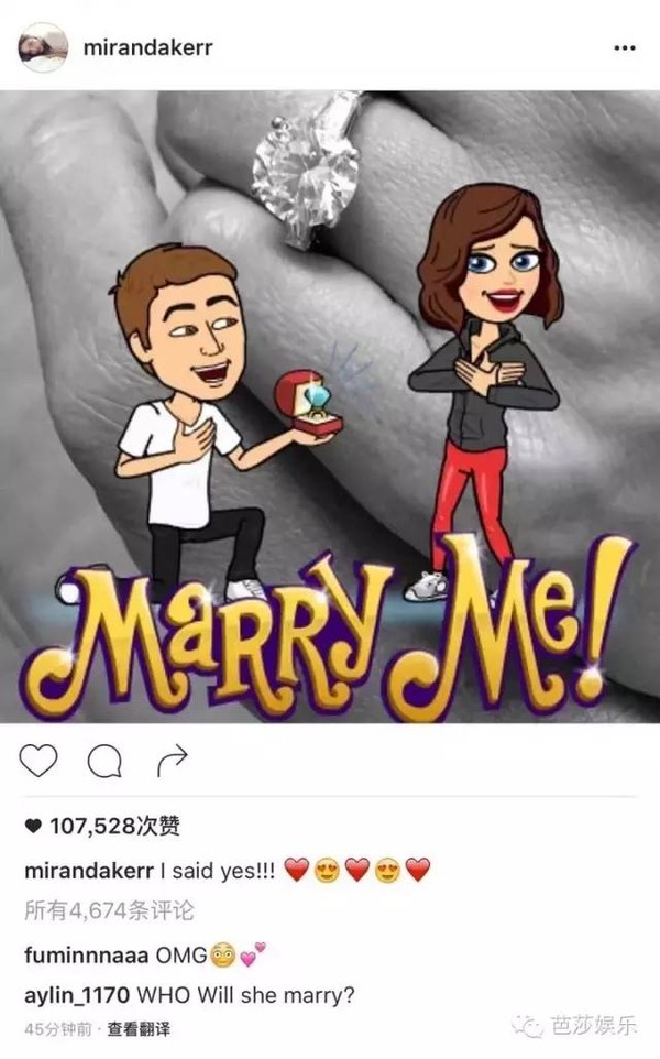 昨天,米兰达·可儿在Instagram上宣布订婚,答应了男友埃文·斯皮格尔的求婚。