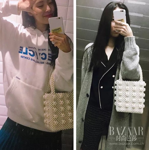 提到串珠包,怎么能不提这只今年超火的Shrimps珍珠包!即使它像极了“奶奶包”,也还是抵不住它从欧美一路火到亚洲。就连韩国“腿精”宣美也为它打call!