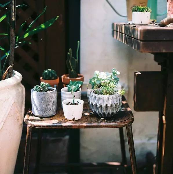 家具不一定精致,或者早已经被淘汰,但是旧物和花草搭配起来,多了一种沉淀的沧桑。冬日里,更是别有一番意味。