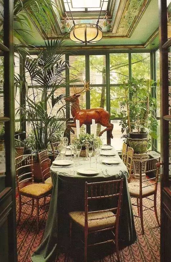 古代欧式的玻璃花房里,常常伴有下午茶聚会,有钢琴,有喷泉,情调满满。
