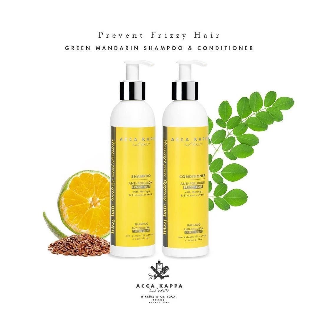 绿橘款则偏重在改善毛躁上,蕴含辣木精华以及亚麻籽油,吹干头发格外松软~