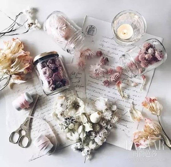 不仅室外花园种植许多花,室内也有许多盆栽,能看出这位小姐姐对花到底有多热爱了吧~她也会将许多花朵制成干花储藏在玻璃瓶里面,也是美美的。
