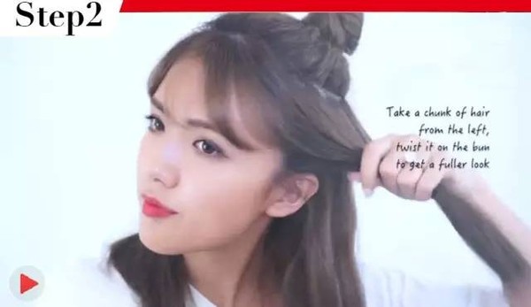 然后,抓起左边的头发,绕到小纠上,让丸子看起来更圆,右边也重复同样的动作!