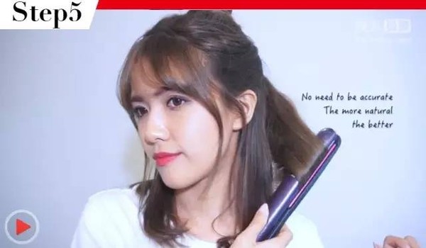 为了让整体造型看上去更时尚,我们把发尾的头发卷成内扣!